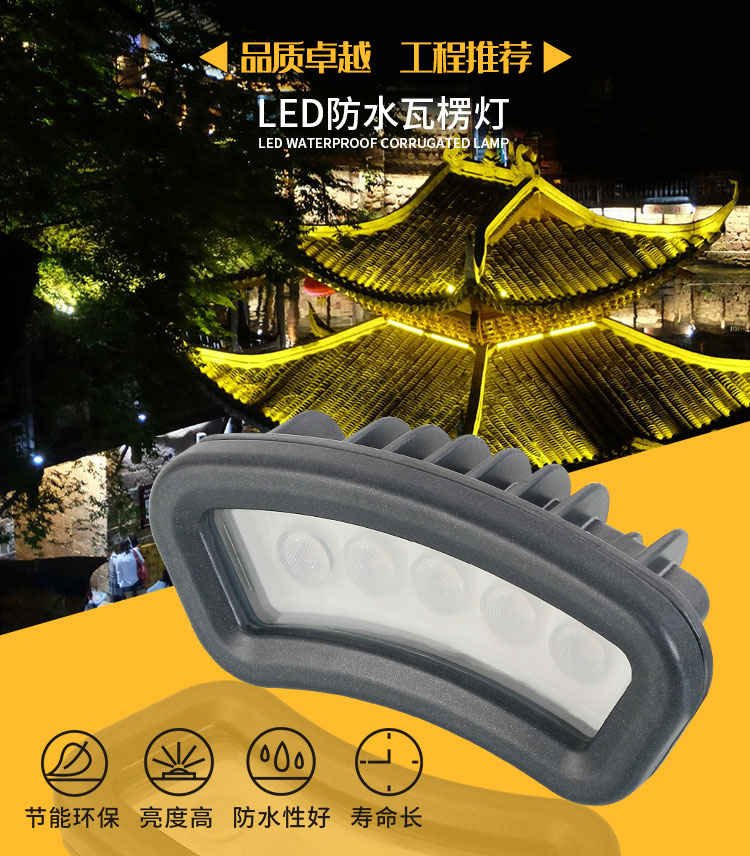 led瓦楞燈月牙燈屋頂涼亭古建筑門樓投光射燈